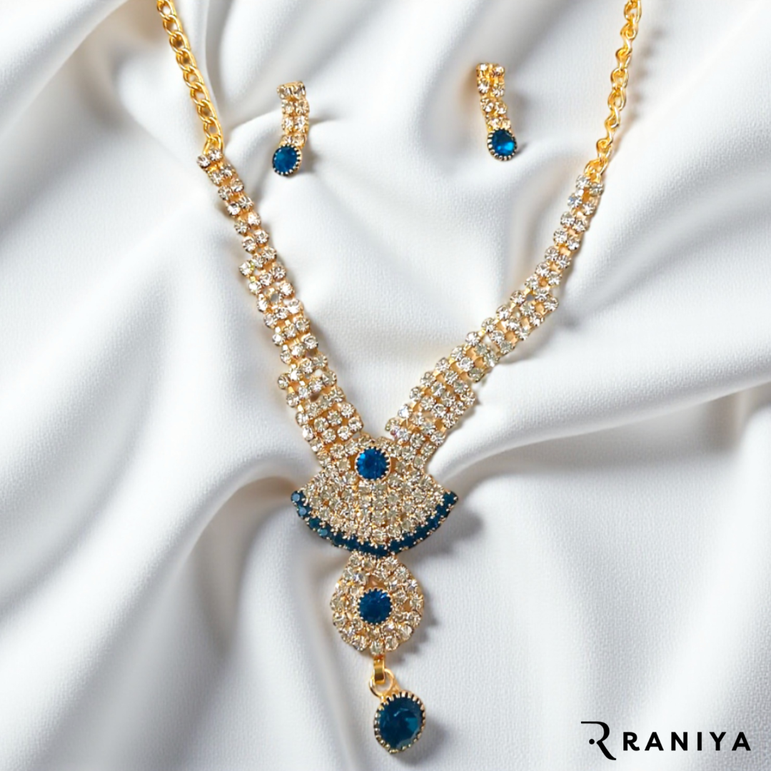 Elevate your jewelry collection with the Blue Droplets Stones Gold Necklace Set, expertly crafted to combine timeless elegance with vibrant blue gemstone accents. This set features finely polished gold complemented by striking blue droplets stones, creating a refined look ideal for both formal occasions and sophisticated everyday wear. Its intricate design ensures durability and a distinguished finish, making it a perfect investment in style and craftsmanship.